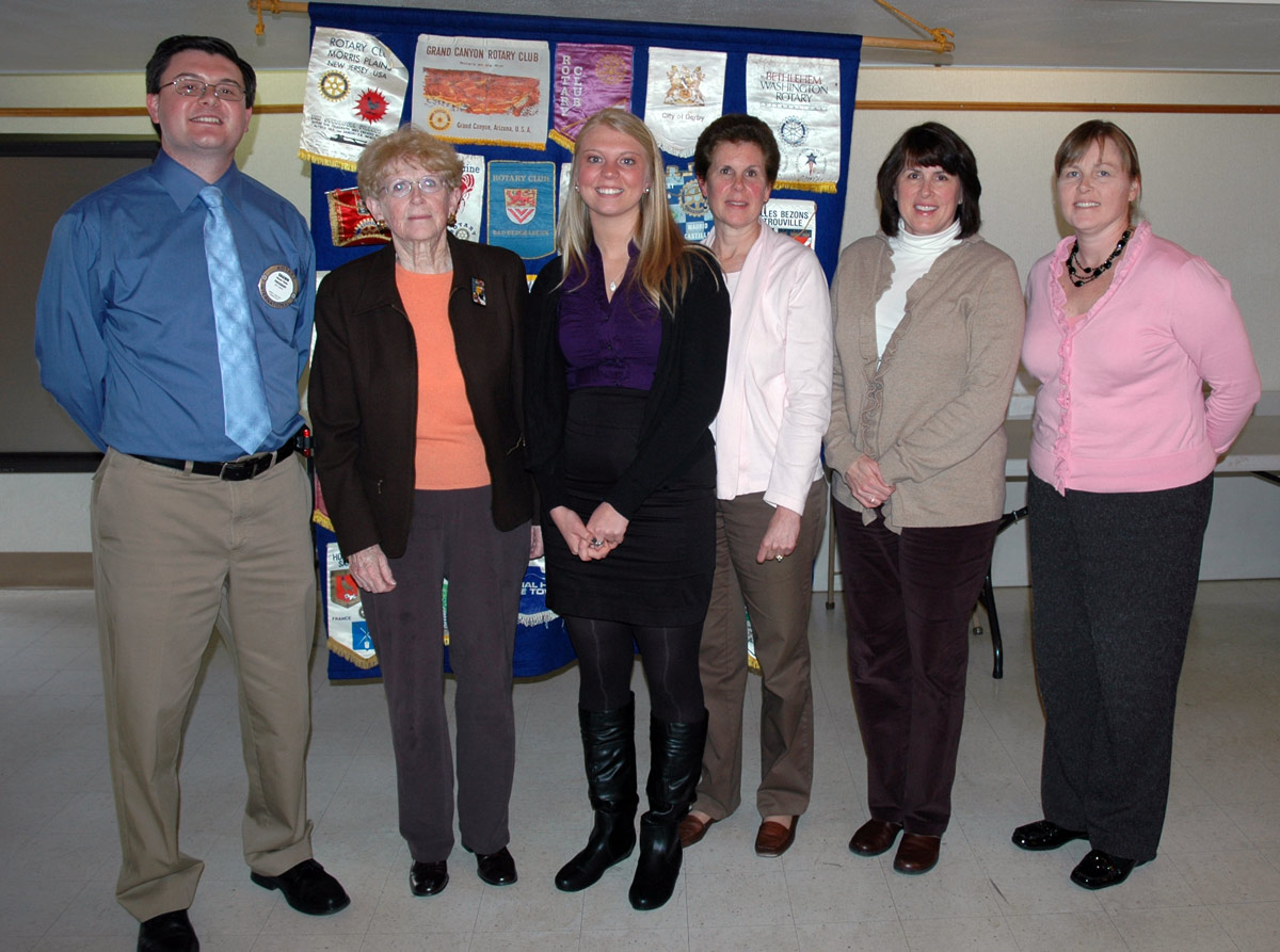 The Derby Shelton Rotary Club presented the winners of its 2011 scholarships with their awards at a club meeting held on January 5, 2012. The Club awarded a total of $14,250 to nine students from Derby and Shelton High Schools. Each school is awarded three scholarships annually while there are three scholarships awarded to students from either school. Click on the links below to learn more about each of the scholarships. Samantha Heins (third from left) is pictured with Rotary President Shawn Fields, Peggy Bednar, Terri Murphy, Lorraine Sarafian and Maria Courtney after being presented with the first DR. Edward Bednar Scholarship on January 5, 2012. 2011 marked the first year that the Club awarded the Dr. Edward Bednar Scholarship. Dr. Bednar was particularly interested in Rotary's student exchange programs, and his daughters all participated in the program. Dr. Bendnar's wife Peggy and three of his daughters were on hand to present the very first award to Samanta Heins. The 2011 winners are: