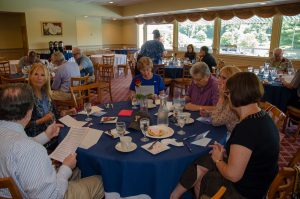 Derby-Shelton Rotarians tried something at the weekly meeting On July 12 – an in-service project during the regular meeting. Instead of a speaker, club members participated in a special hands-on in-service project at the wrote thank you cards to members of the military. The cards will ten be forwarded to service members all over the country and world. It marks the first time that the club has turned a weekly meeting into a special project and it will be repeated periodically during the year.