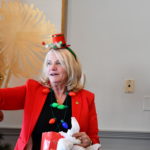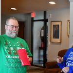 Derby-Shelton Rotarians took a brief break from helping others to celebrate themselves with the annual Holiday luncheon. It was a fun day for everyone with great music provided by The Stardust Jazz Trio, a very good report on growth to our Foundation by advisor Bill Miller, good food and of course the fun of the annual gift exchange. Every Rotarian provided a gift wrapped package with a value of $20. Members then received numbers for the order in which they would select their gifts with the caveat that each person could retain the gift they selected or instead “take” the gift of anyone going before them. There was a lot of laughter and smiling faces throughout!