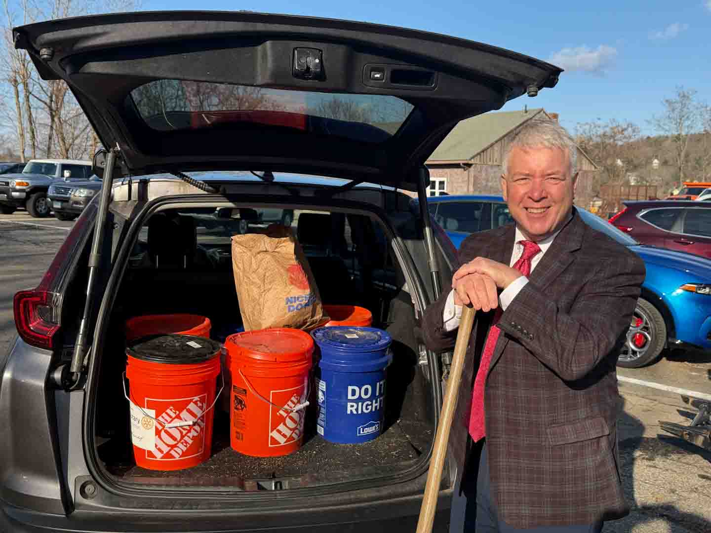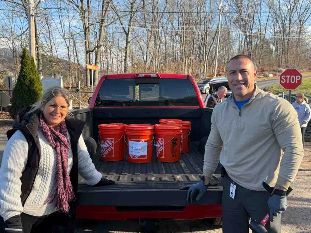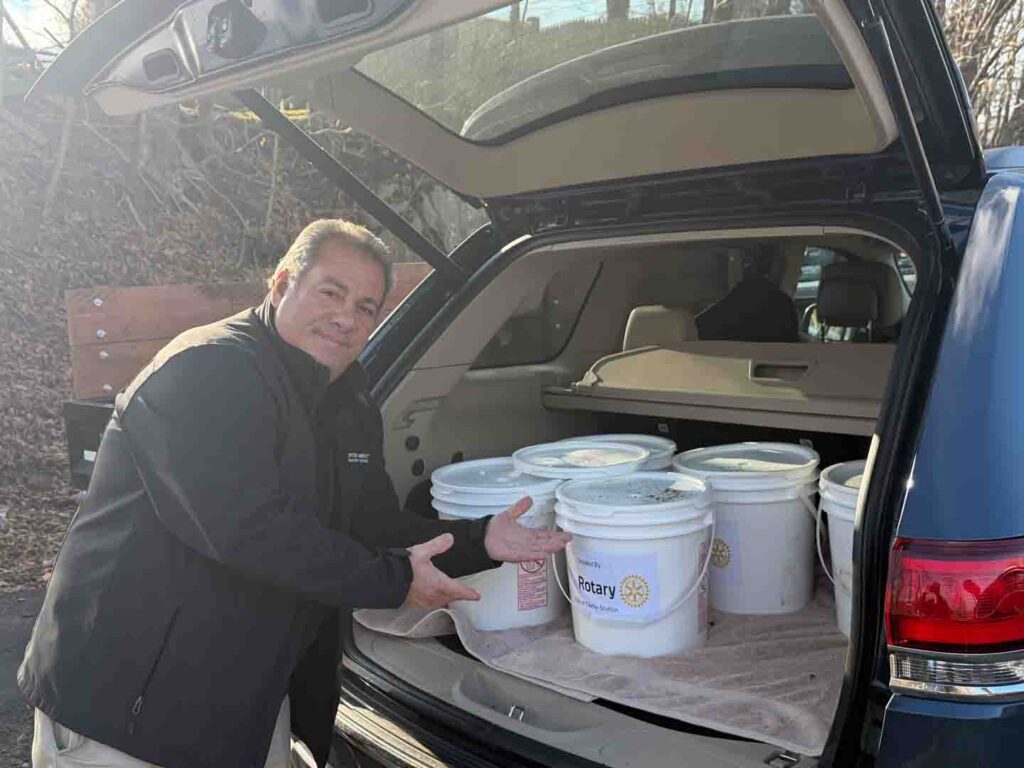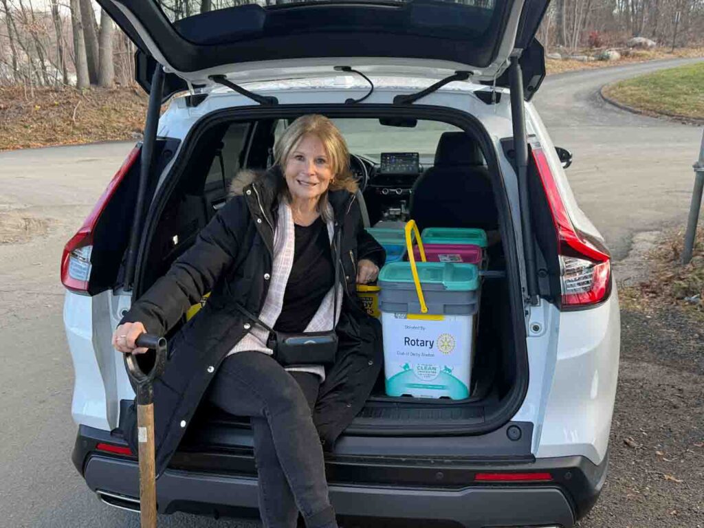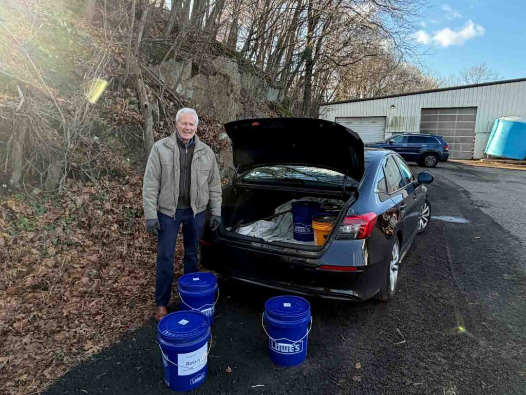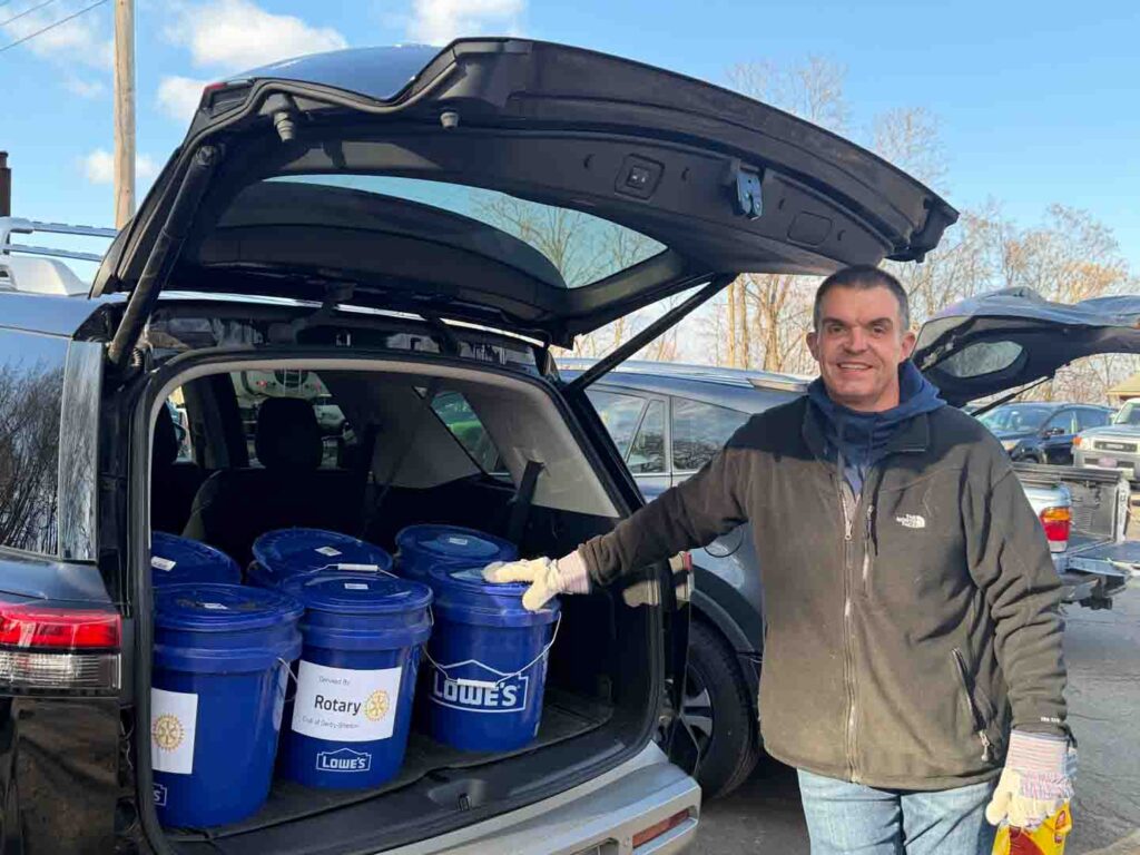 Since 2008, Derby-Shelton Rotarians (and friends) have taken pleasure in delivering buckets of sand to seniors in Derby and Shelton in advance of upcoming winter storms. This year, the Club is delivering 100 buckets to those in the two towns who have requested the buckets to help give their porches, stairs, and sidewalks a little more traction throughout the upcoming months. As always Kim Ryan-Caro did another outstanding job coordinating the project with club president Joe Shapiro mapping out delivery routes. A special thanks goes to the Shelton Department of Public Works for helping to make this project possible.