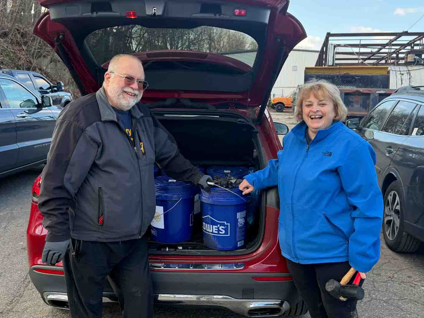 Check out all these smiling Rotarians (and friends) as they prepare the buckets for delivery on a freezing December Day!
